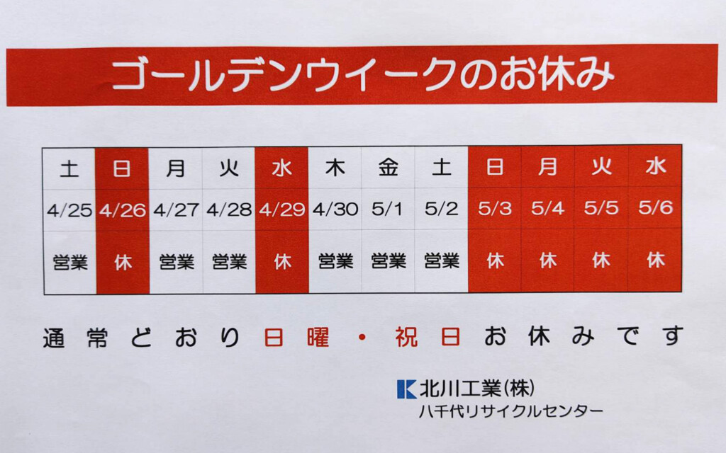 • 2026 / 令和8年ゴールデンウィーク休業のお知らせ